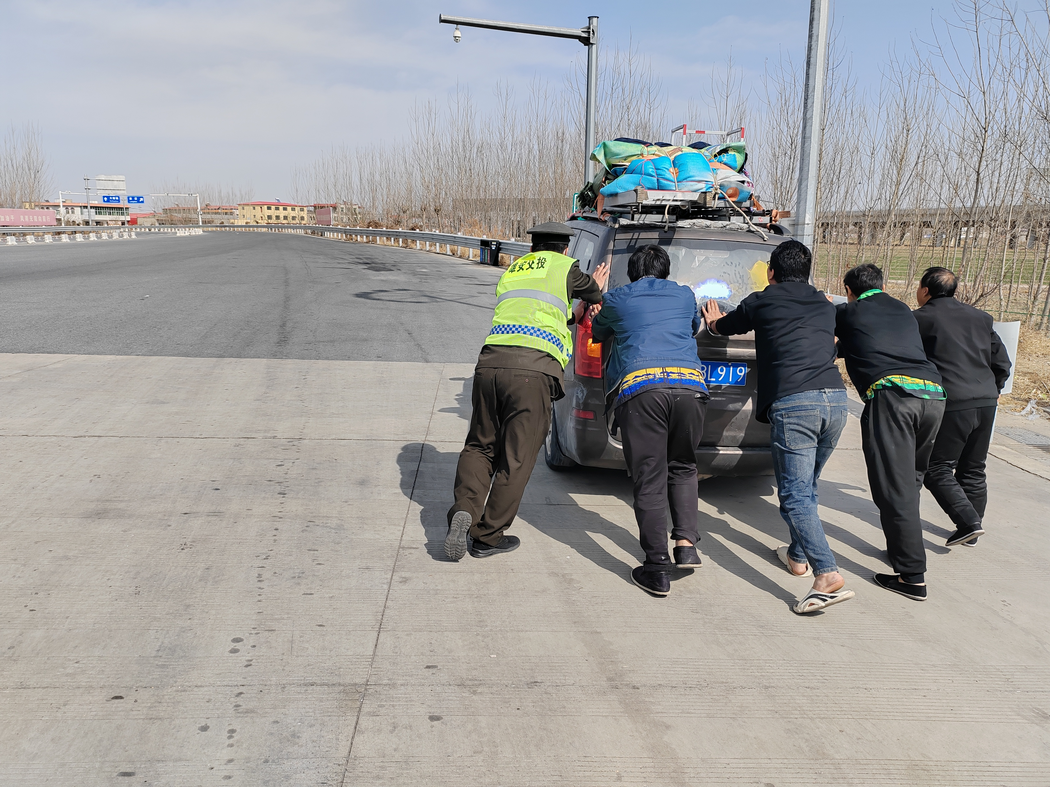 大留镇收费站热心服务帮助司机推车