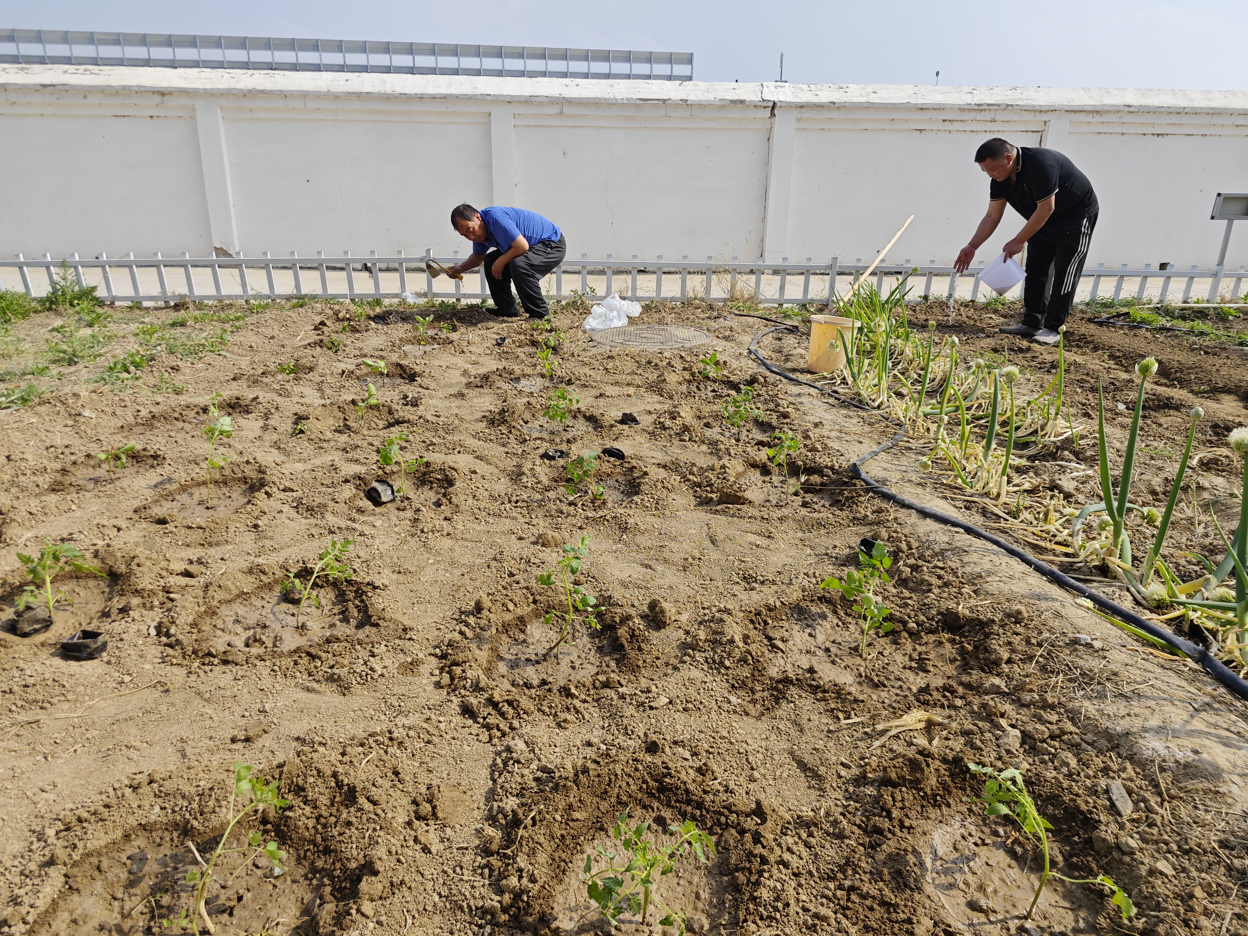 为培养职工吃苦耐劳、团结协作的作风,丰富职工业余生活,大留镇收费站组织职工在院区小菜园种植茄子、西红...